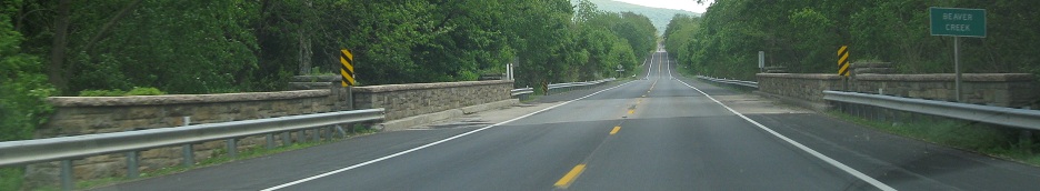 From that point east, US 40 directly follows the National Road, so every stream crossing is a 19th century bridge. The first three are at Beaver Creek, Catoctin Creek, and Middle Creek. I don't know the name of the last tiny little tributary, but it had the best vantage point from the side for me to show you an example of what all of these crossings look like: