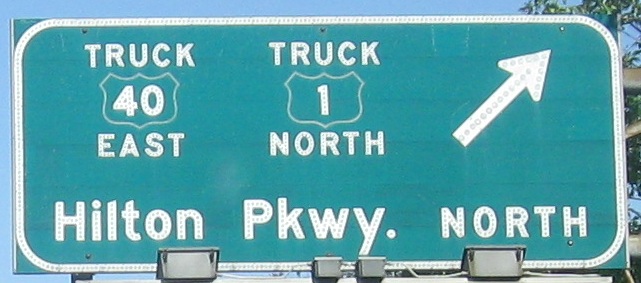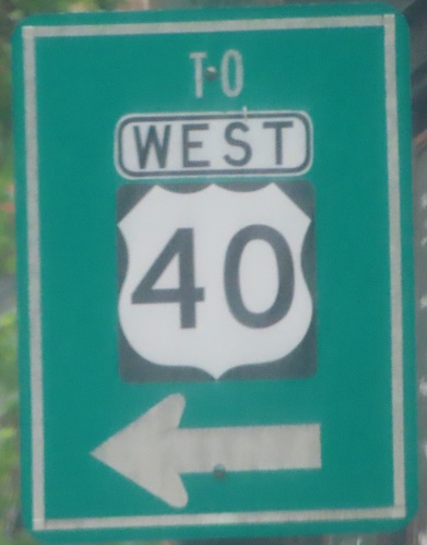 US 40 EB at and onto the ramp, with an old and unique SAFE SPEED advisory sign that might even be wood. Some movements use Hilton St. instead, which is why not everything gets neat button-copy outlined shields.