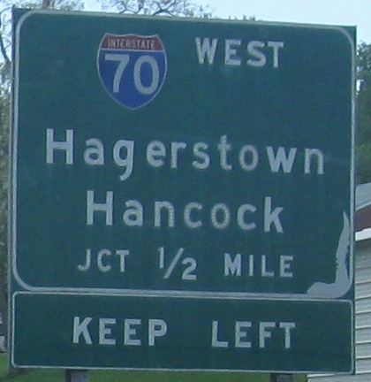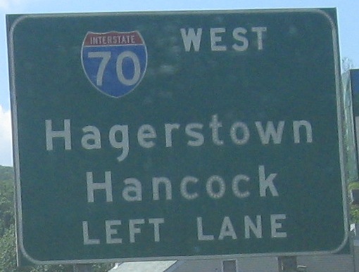 Yes, those are state-name shields. Yes, the fonts predate FHWA standards. Yes, that says... holy cow... I-70N! This is the last remnant across the nation of the suffixed routes (except I-35W/E still in existence). WB at Cooks Lane/Old Orchard Rd., which is half a block east of the Edmondson/40 split. I don't mind giving the location even if the sign comes down, because traffic looking for I-70 will just be confused until this gets replaced. But if you read this, Maryland, please save the sign for me?