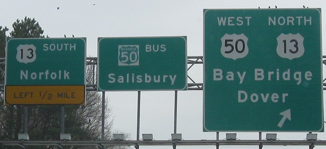 Bus Business 50 appears on the US 13/50 duplex outside Salisbury (heading southeast).