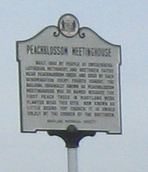 It's only fitting to find an antique car in front of an antique house. The meetinghouse, built in 1880 for those of northern European faiths (such as Lutheran), was named for the nearby creek which in turn was named after the famous Maryland peaches planted here. Okay, maybe not so famous.