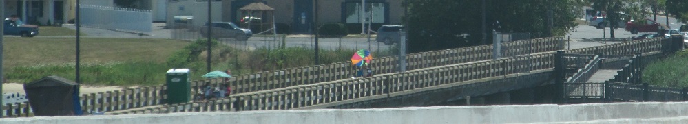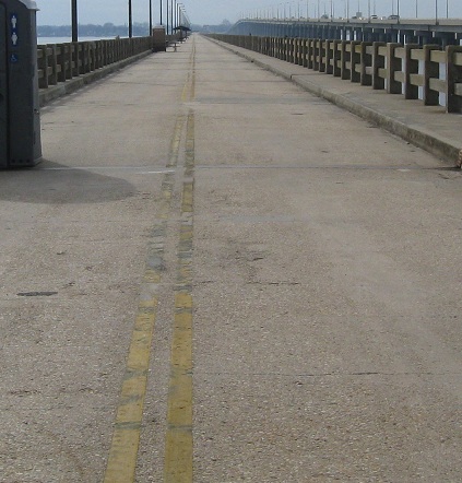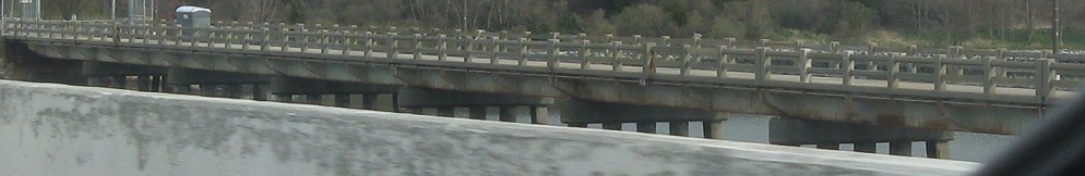 From US 50 WB across the wide Choptank River, one can see the old bridge that was left almost entirely intact for public (fishing) use. Only a couple of spans are missing to let boat traffic through.