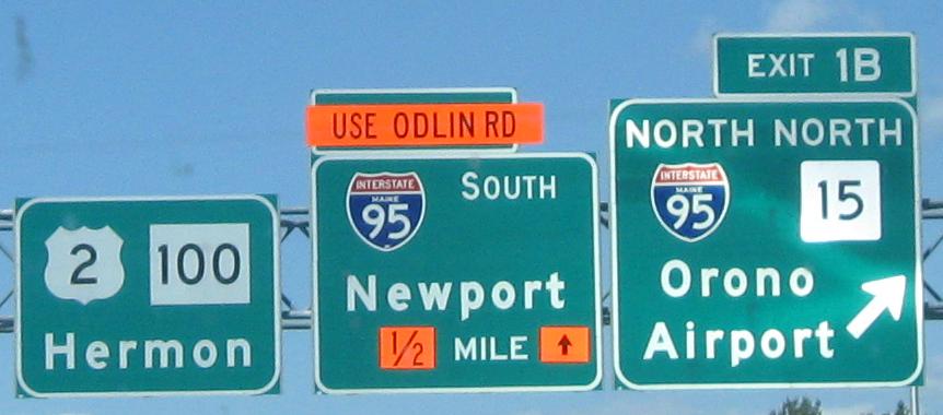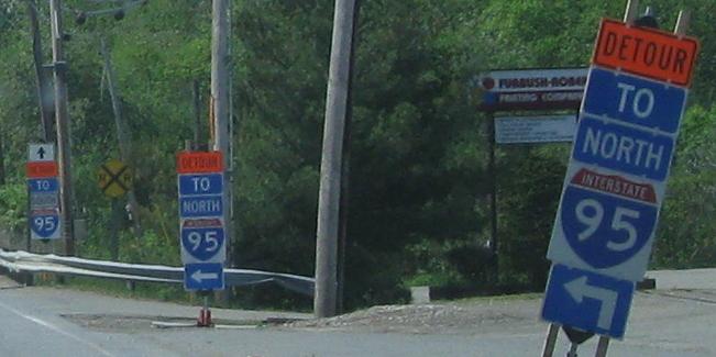 There goes ME 15, and there goes a detour onto Odlin Rd. But where is the state name? Those are Rhode Island's specs, not Maine's.