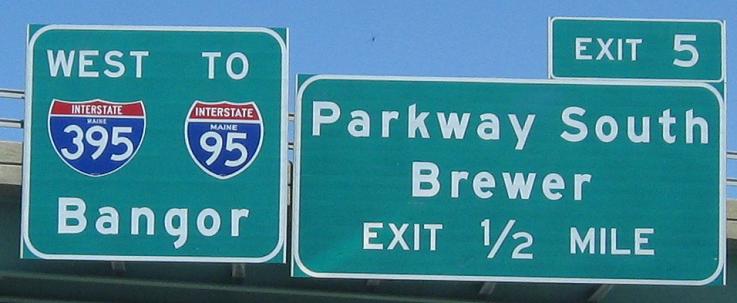 ME 15 jumps on at Exit 4 for a ride across the Penobscot River and pretends it's from Connecticut (header photo). Upriver toward Bangor (which does not rhyme with anger) is the Wilson St. Bridge, carrying ME 9 and US 1A, and the State St. Bridge carrying ME 15 Business.