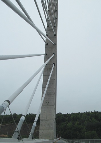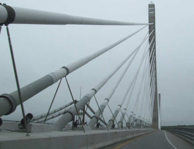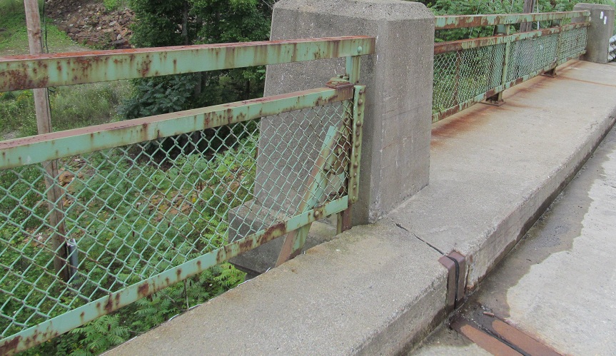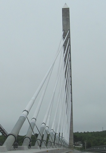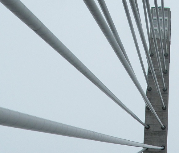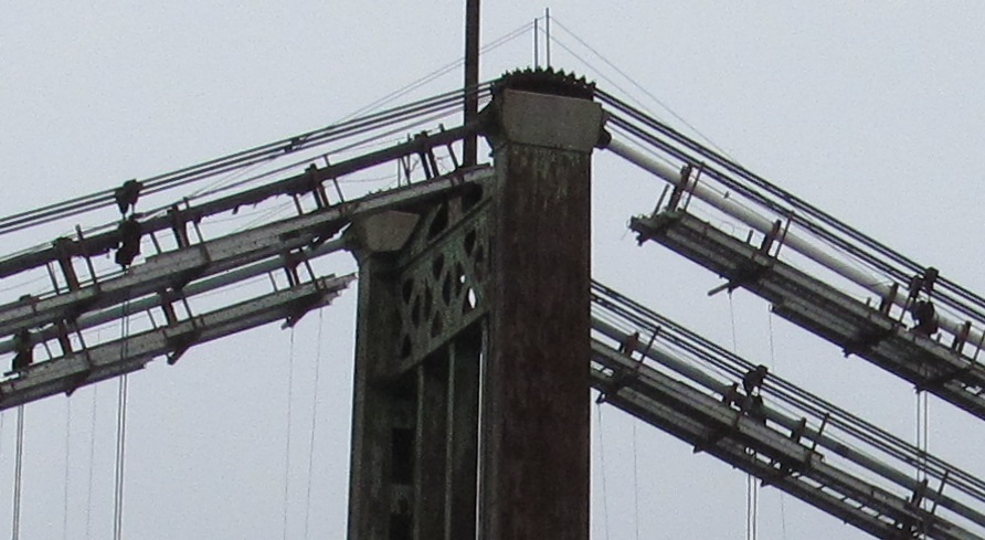 A small cross-section of what became the new bridge, with asphalt so thin it almost seems painted on. This would have been an ideal playground castle for me, maybe minus the pointy cables.