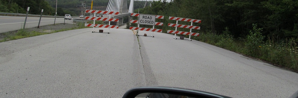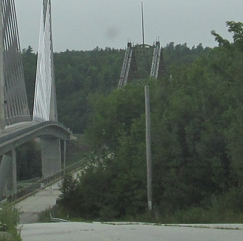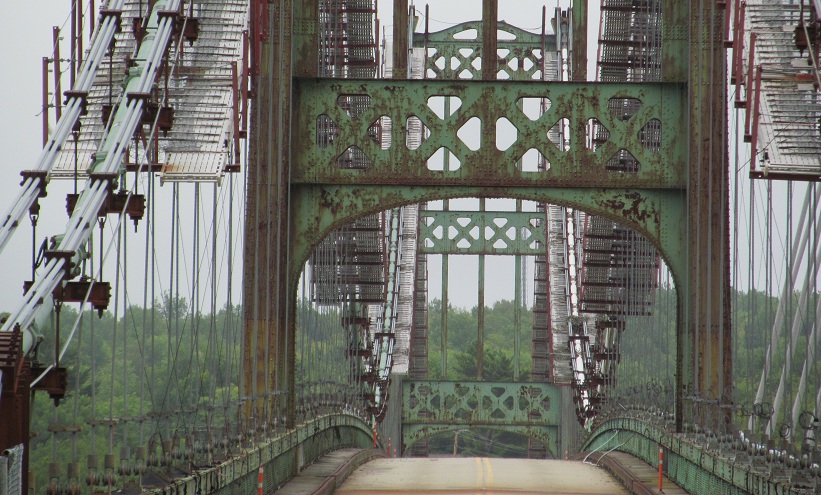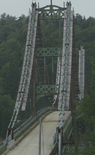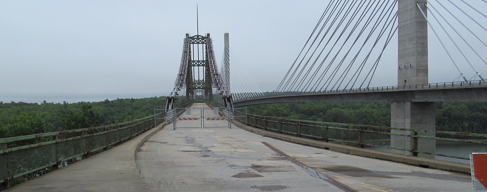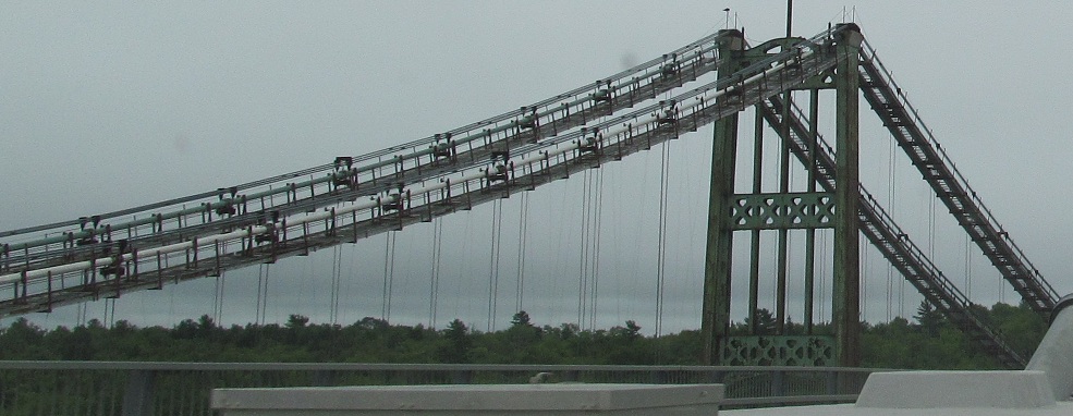 Starting with the Waldo-Hancock Bridge, looking east from the Waldo (County) side. It has since been demolished.