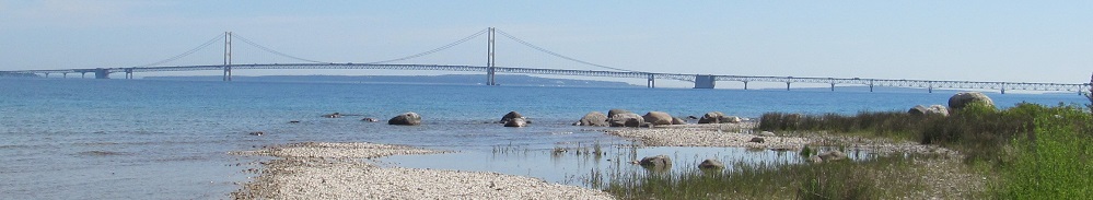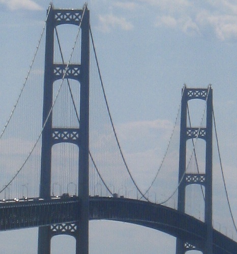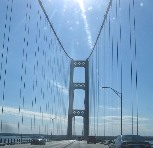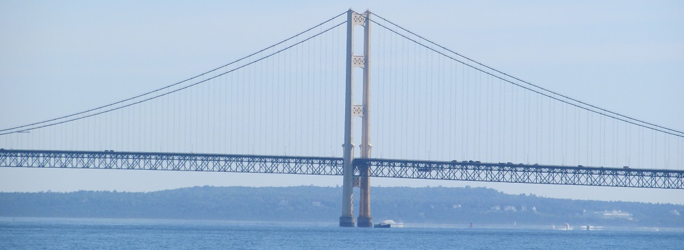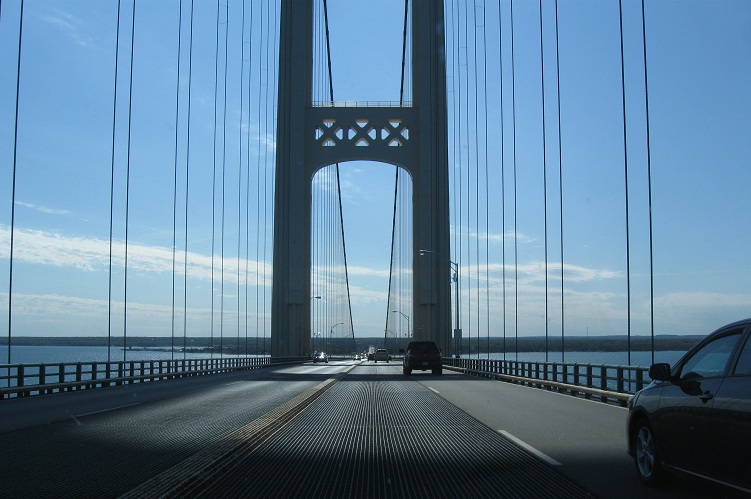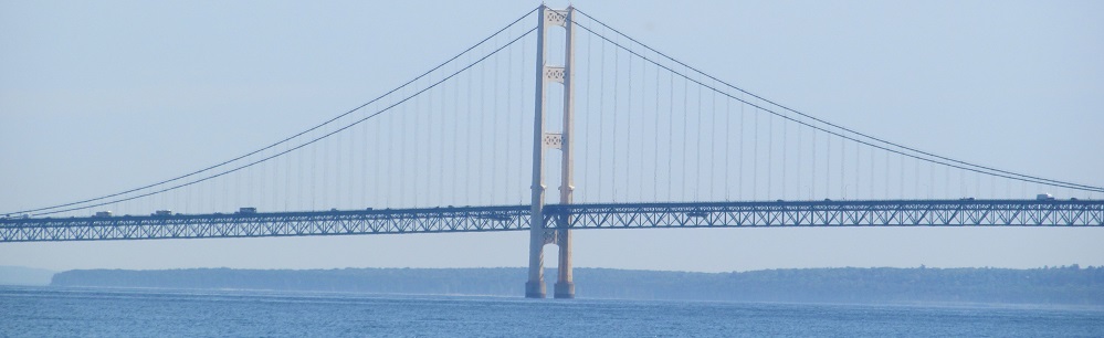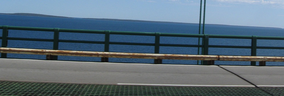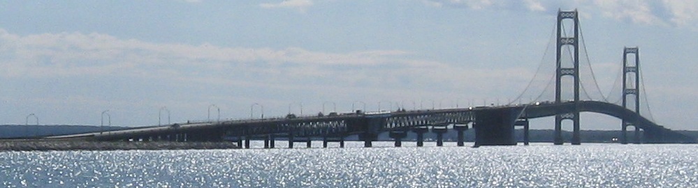 I came back during the day just to get you some better coverage of the Mackinac Bridge. These photos look south from the Father Marquette National Memorial on the Upper Peninsula.