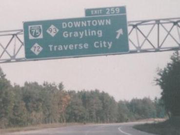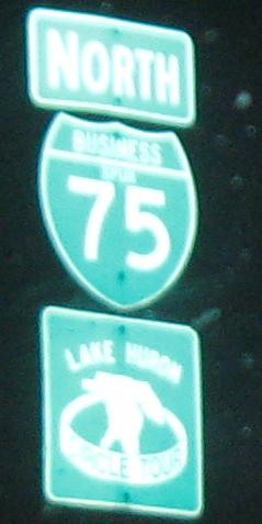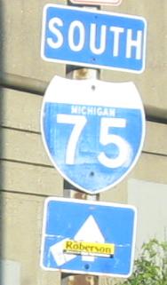 A non-cutout Business shield on I-75 SB, courtesy J.P. Nasiatka. A regular white outline would be just fine, but Michigan doesn't think that way.