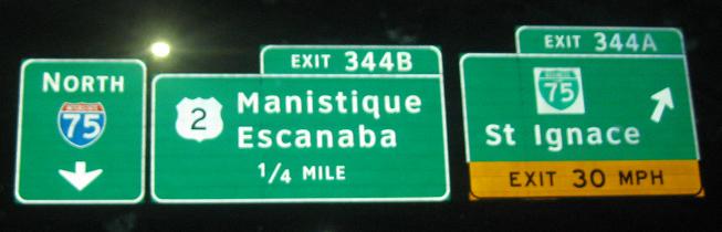 Northward across the U.P. (Upper Peninsula). Here is the beginning of the western US 2 and roads so sparse that the Lake Huron Circle Tour must use the Interstate between business routes. Well, not really - it could follow old US 27 instead on Mackinac Trail.