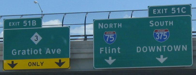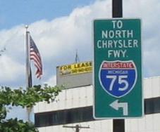Business I-75/US 24 SB in Pontiac. Woodward Ave. becomes M-1 to the south.