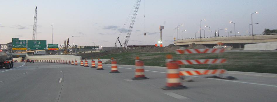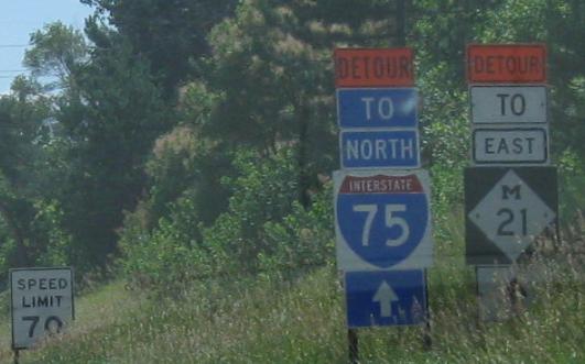 SB in Flint approaching Exit 117 for I-69. I oughtn't make fun of construction shields that do their job, but then again, why don't contractors have a ready set of sign blanks already cut out?
