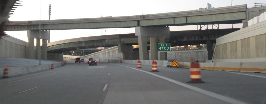 Looking over to Ford Field (home of the Lions) on the NB side, then NB deep in the trenches of downtown.