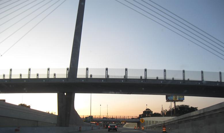 A couple of north-facing bridge photos, although the second one is clearly and unapologetically shot through a rearview mirror.