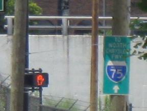 Congratulations, you found the prize. These old-font, 1960's (at latest) shields can still be found downtown. I'll just say they're quite near Tiger Stadium. Click for closeup.