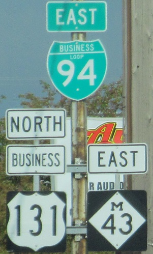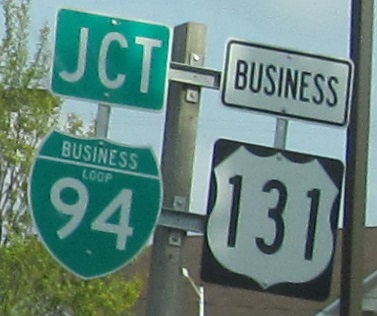 WB at Bus. US 131 NB, the noted two blocks east. The first two photos are on the left and right as Michigan does.
