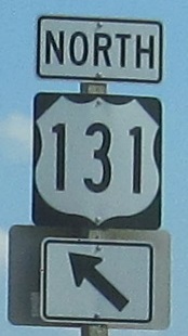 The US 131 freeway starts south of Kalamazoo where the modern highway diverges from its old alignment, Shaver Rd. The narrow shields are a theme on northward.