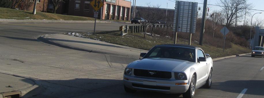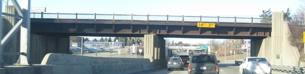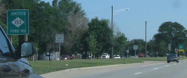 NB in the Detroit area, starting with two views of the exceptionally narrow US 12 interchange (first of a railroad overpass, then the EB/SB ramps folded a few feet from the curb). Michigan only non-square diamonds on guide signs (like the older example in the third photo), so every other elongated diamond you see is a mistake. That third photo also shows off a typical "Michigan left" - to make a left from the main road you pass the side street and turn left in this U-turn lane. To make a left from the side road, you turn right on the main road and use the same U-turn lane. Of course, it's only found on wide divided highways, and Michigan may be the only states that has many of those in urban areas.