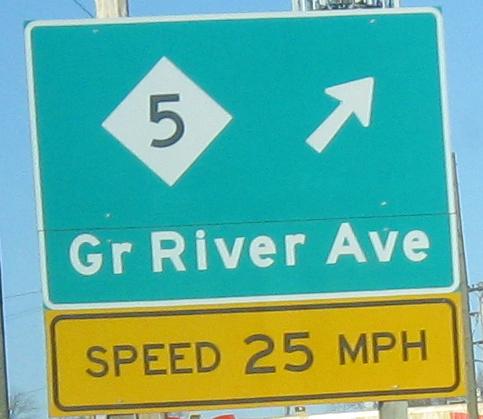 Two subtle NB errors. Standalone shields should always have an M on top, which takes care of the second photo. If the first photo looks fine to you, it's because you're not a Michigan native. All of the other signs abbreviate Grand as "Gd."