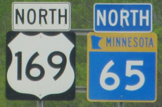 US 2 WB joins US 169 SB as they enter downtown Grand Rapids. This is the non-commercial part of an ad for an Oz museum, which belongs here because Judy Garland was born here, and we all know no one else was in that movie.