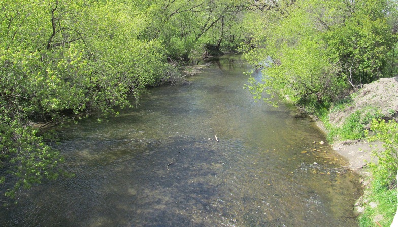 Looking west and east along the North Fork Zumbro River. The town was named for the river with a corrupted suffix of "ton" from the native Dakota (instead of using the perfectly acceptable English suffix "ton"). The river's name is itself corrupted from the French Rivière des Embarras or River of Obstructions (not the River of Embarrassment, or no one would have settled there), which is pronounced, in English, as Riviair Day Zombra. (Please, please, do not try to say those wordoids and pretend you know French. It will be easily apparent you know nothing.)
