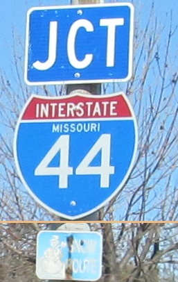 First shield on I-44 WB is for a diferent route, but it's temporary.