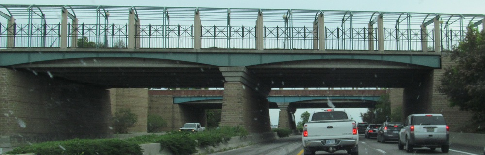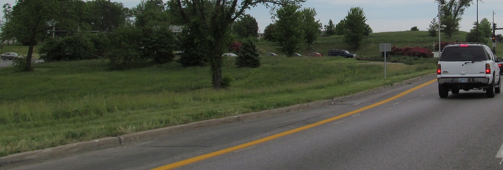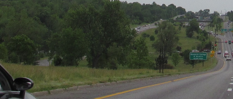 Bruce R. Watkins Dr. is the only non-freeway connecting an incoming freeway to downtown Kansas City. The section under Meyer Blvd. is a brief freeway between at-grade intersections, the one of the four that's actually been converted. There's enough room to have existing US 71 serve as frontage roads to a future freeway, but perversely, the community would rather have choking traffic (along with noise and exhaust fumes) and an unusable, wild-growing area in the median than allow a freeway to be built below grade and help reconnect the two sides of the corridor. Well, that's NIMBYism for you. Photos are SB.