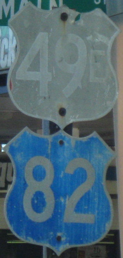US 11 was blue, and these are the only other colors I know of - obviously US 82 was also blue. Click for a closeup that shows you that US 49E was red. Unlike the shield on the US 11 page, these are the only cutouts I know of in the state.