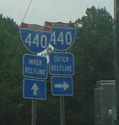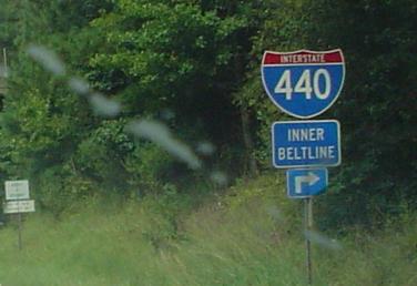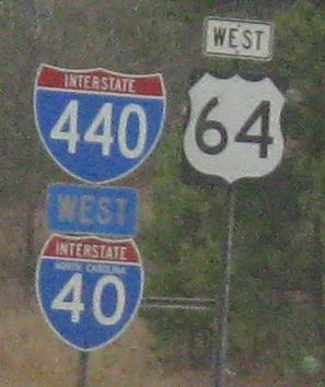 These are older eastbound signs, and this isn't I-440 anymore. I-440 has been truncated to no longer multiplex with I-40 around the south side of the "Beltline" (which now deserves quotation marks). I'm sure the signs will be even slower to come down than the I-40 and Business 40 shields around Greensboro (who wants to bet there's still an old one that becomes correct again?).