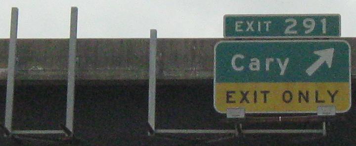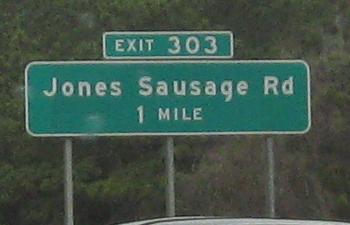 Jones Sausage Rd. NB at I-40 Exit 303. No, I'm not kidding. I have a westbound photo to prove it. By the way, those familiar with the area will note that this assembly is in Garner. My definition of "Raleigh" for the purposes of this page is anything inside the existing or future I-540/NC 540 Outer Loop.