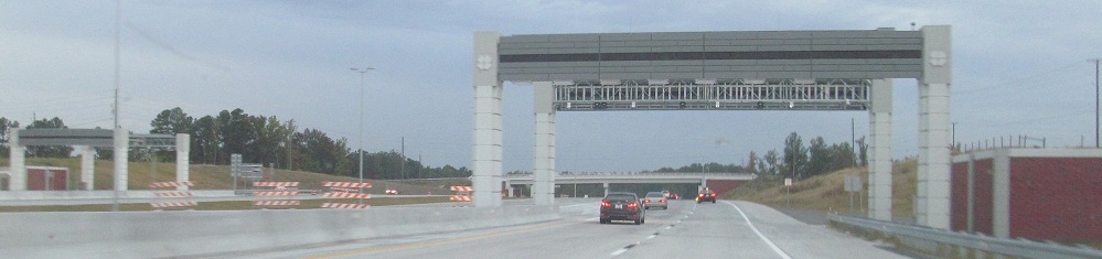 Continuing NB, ending with the onramp and mainline tolls. The easiest way to do AET is a single gantry (or one per direction) between each interchange. With all the ramp tolls, the newly created NC Turnpike Authoity must have found a way they thought was better.