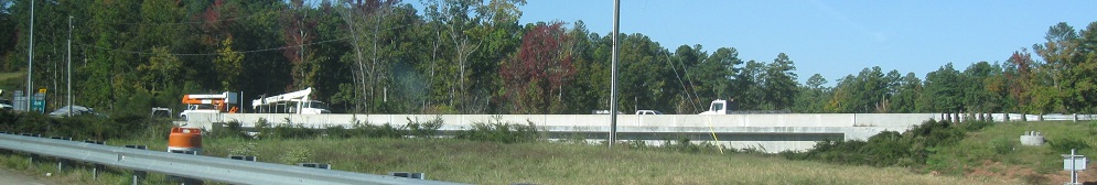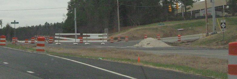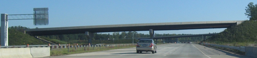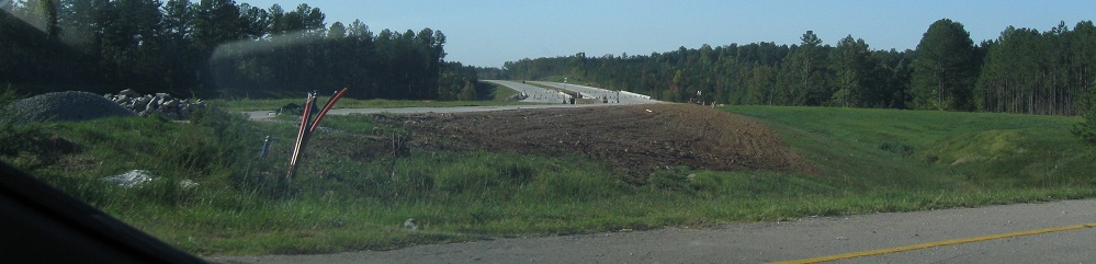 The same place, but now nominally southbound, in October 2011, not too long before the next segment opened. The interchange looks like it was built for a full cloverleaf, but without the loops from NC 55 (WB-SB, EB-NB) for now.