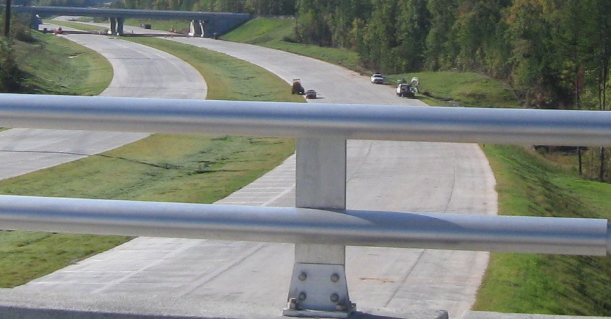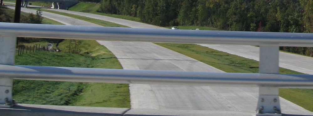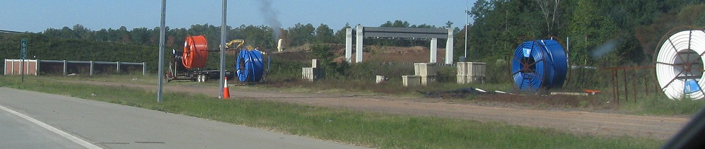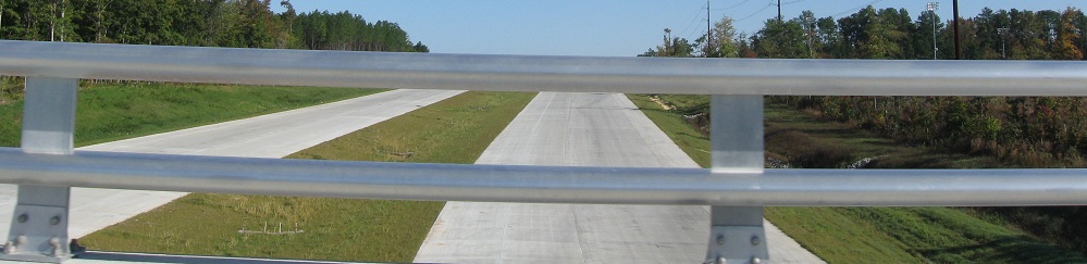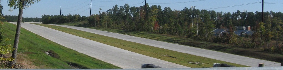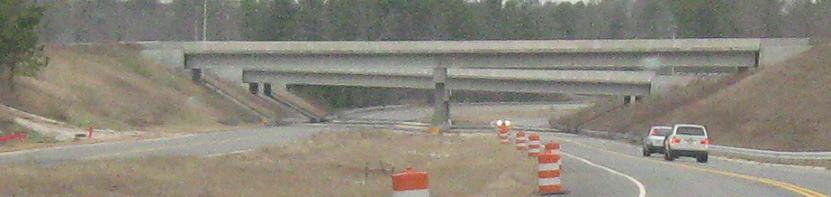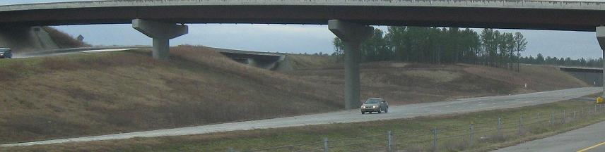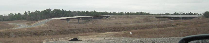 Looking north (first two photos) and south from McCrimmon Pkwy., next overpass south of NC 55, in 2011 before finishing touches were added to extend the road down to US 64. (The next segment, around to NC 55 south of Apex, opened not long after that, and for now the remaining beltway is unbuilt.)