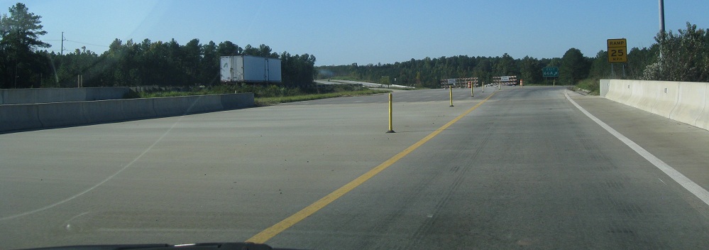 Speaking of US 64, these photos enter NC 540 from its new Exit 59 end in October 2012. Yes, Virginia, this is a toll road. Fortunately, NC is so lazy that they never bothered entering into reciprocity agreements with most states, because with the few they have (CA, FL, OH, TX, VA) they can already bill 95% of users. So if you're part of the 5%, come explore!