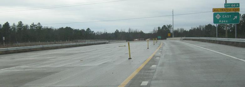 From Exit 66A, the future Exit 66 onramp from NC 55 to NC 540 SB, as stubby as the highway at this point.