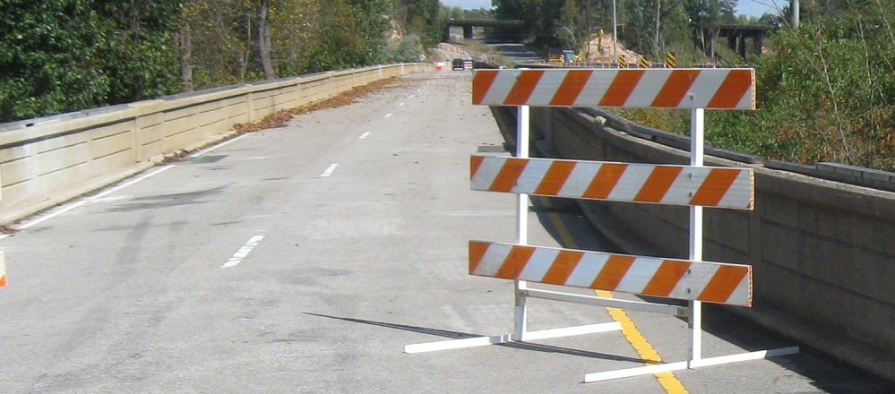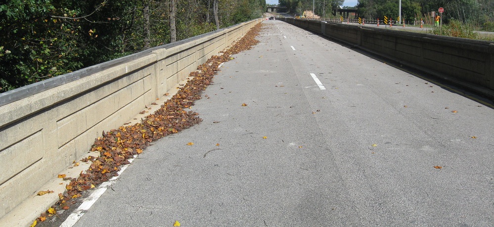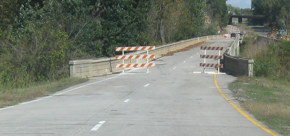 Turned around and heading SB/WB to the end of the divided highway. It's clearly no big deal to be down to a single bridge, just a great surprise as to which bridge survived.