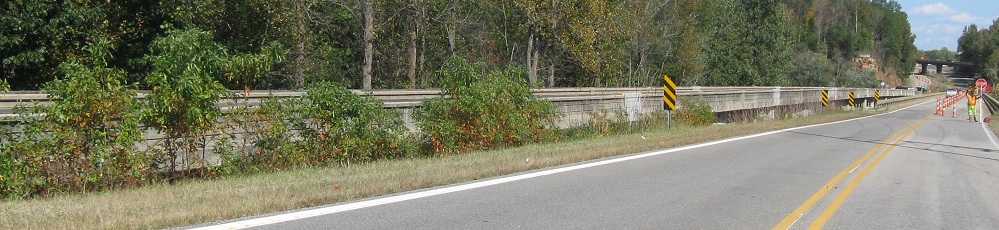 You may have noticed that a flagger had US 29/70/NC 150 down to a single lane; I took the opportunity to duck out for a few quick photos while the SB/WB direction came through. The old bridge is still striped for SB traffic, and you can see the hasty crossover in the background.