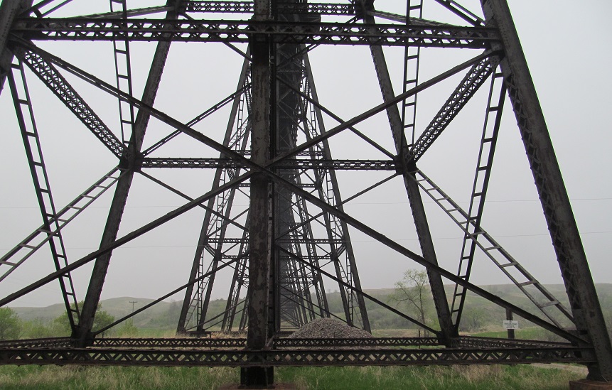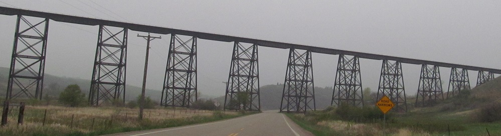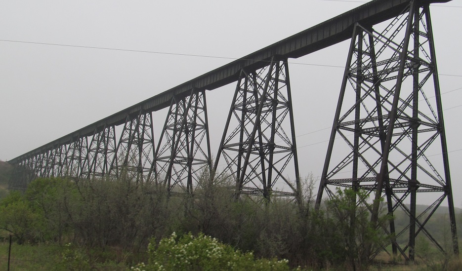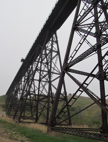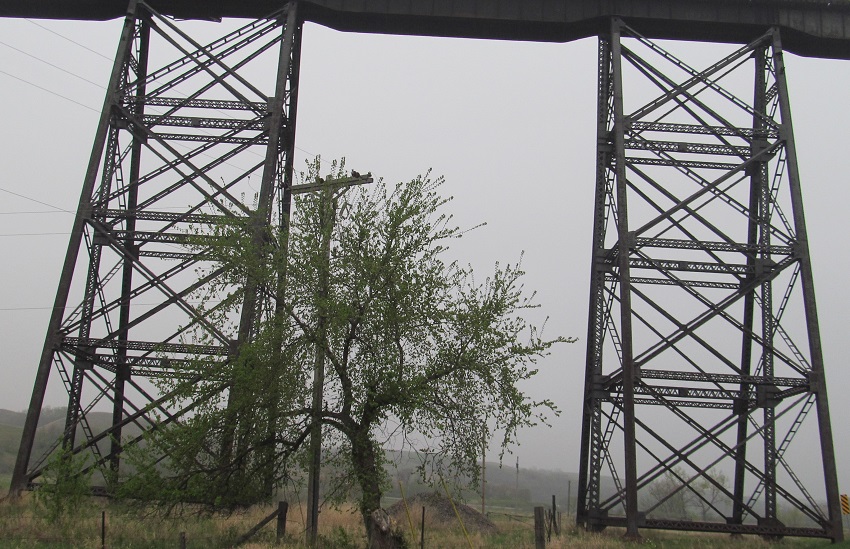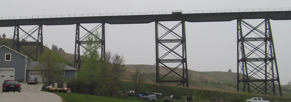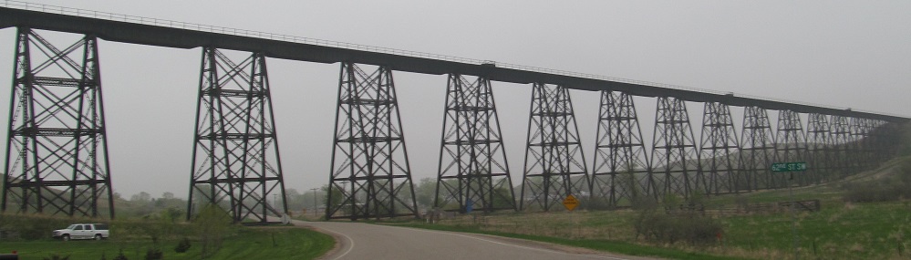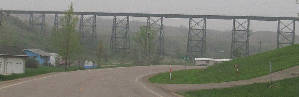 Heading south on Ward CR 12 toward the 117' high trestle, built in 1899 and spanning 1/3 of a mile. Not only does it still carry rail traffic, it's part of the Amtrak network.
