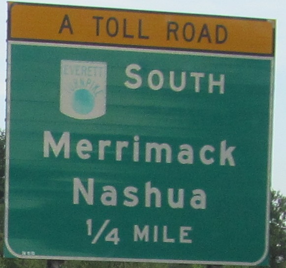 Not the best pictures, but showing how NH uses a top yellow band on BGS's to denote toll roads. The second one is a mistake; the word "TO" shouldn't be there, as this exit leads directly onto I-95. There are no exit numbers on the Super-2, only on the divided freeway west of I-95. The eastern section of NH 101 probably would not have been part of I-92.