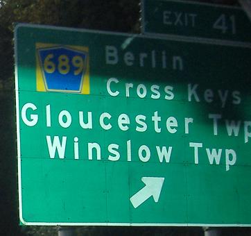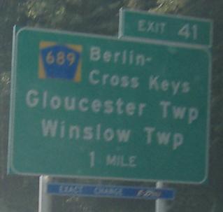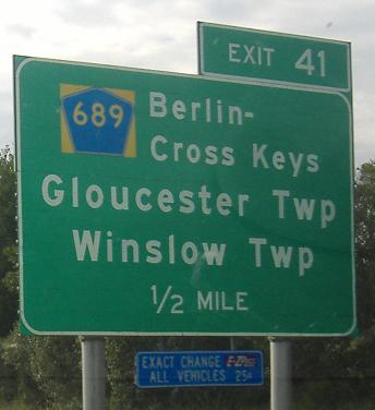2) The South Jersey Transportation Authority doesn't use the standard signs that the rest of the country uses. The Exit 41 BGS's are close, although the 689 appears to be too shy to get any closer to the "lou" in Gloucester.