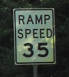 The end of WB Exit 9, with a non-standard shield at the bottom of the ramp.