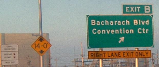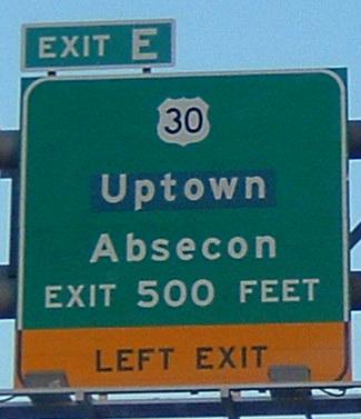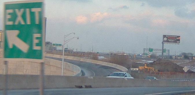 What you are witnessing here in one of my two photos on this page is the opposite of the Exit G/H split above. That's right, going southbound, you skip over six letters. H and G are onramps, F and E are northbound-only, and D and C don't exist. At least you get A this direction.