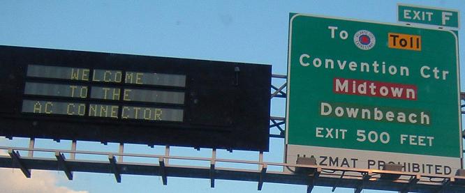 At least the Brigantine Connector connects Brigantine to more than just the Expressway. The To should be a TO with small caps, and the Toll should be TOLL in a yellow square (scroll up to NB Exit F for a more, but not fully, correct way of doing it). By the way, speed limit is 35 MPH on the Connector, another very un-freeway-like characteristic.