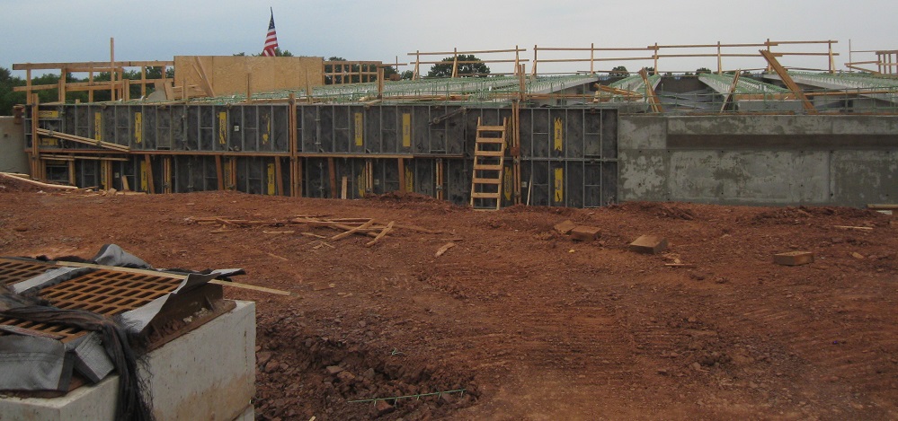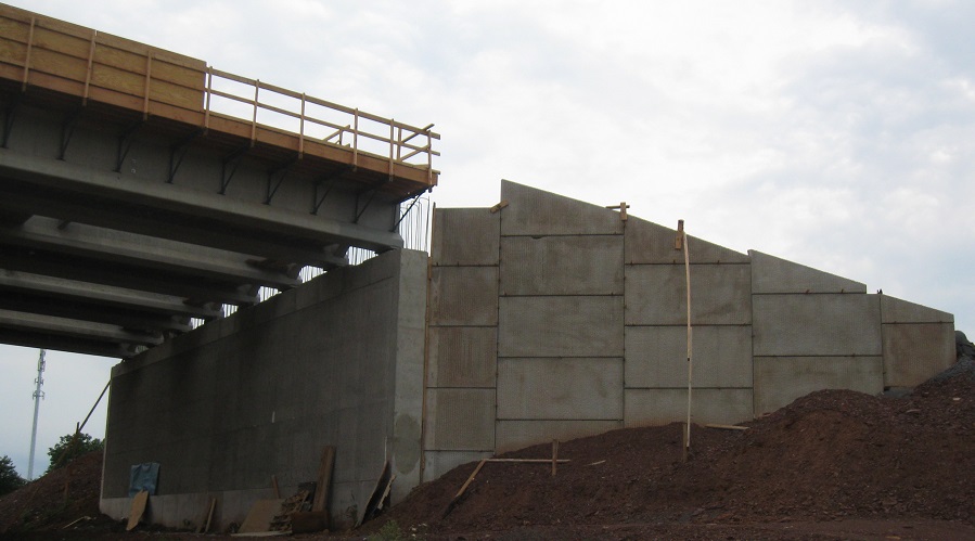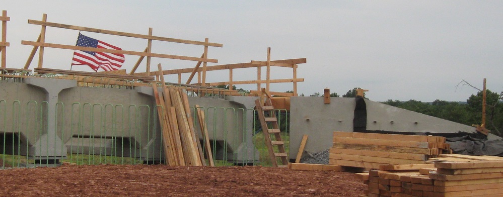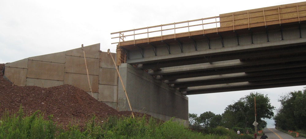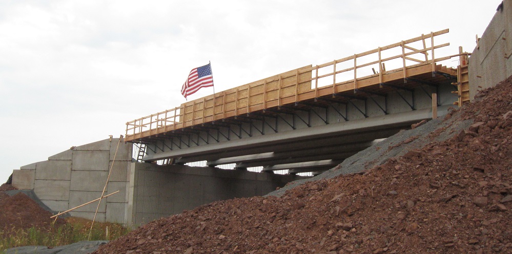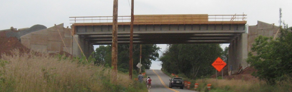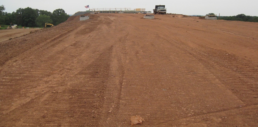 Walking north up the south embankment. There's quite a lot of grade to fill, about 3 feet to the top of the grate (which is set at the roadway surface). About half is concrete, and the other half is stone subgrade to let water drain from the concrete instead of ponding underneath and cracking it.