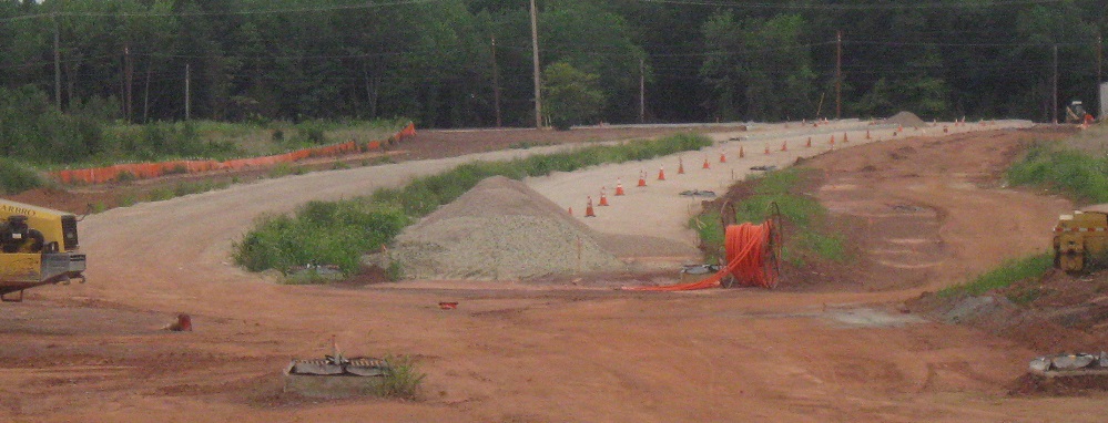 Looking south from the new bridge at Hillsborough Rd. and the temporary end of the bypass. It's divided over Hillsborough and the railroad, but still just one lane each way, in another notable failure by NJDOT to fully upgrade the corridor.