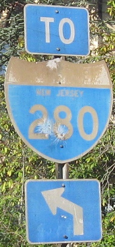 I'll just throw the penultimate survivor of an Essex County Highway System shield in the middle of this page. This was on Washington St. EB at Franklin St., just east of Bloomfield Ave., until maybe 2010; click for closeup.