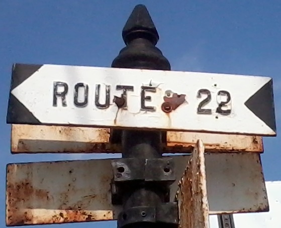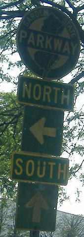 An old street sign of the type that's dying in Irvington and an old Parkway shield SB.