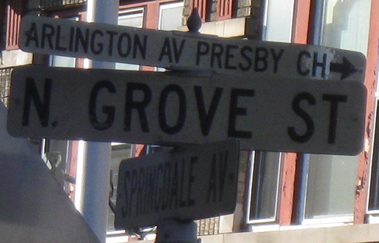 Franklin St. SB. in Bloomfield. The route to the Parkway NB is via Montgomery St., cutting the corner of a triangle.