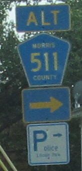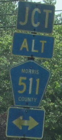 Since Alt. CR 511 is its own designated route, the second sign would be incorrect - if this were simply an alternate route to CR 511, the first one would be improper. Actually, Alt. CR 511 isn't even an alternate route to CR 511. It would have to run down US 202 southward to meet CR 511 again, but instead turns northward on 202 to meet NJ 23, where Alt. 511 ends. It should thus be Spur CR 511.