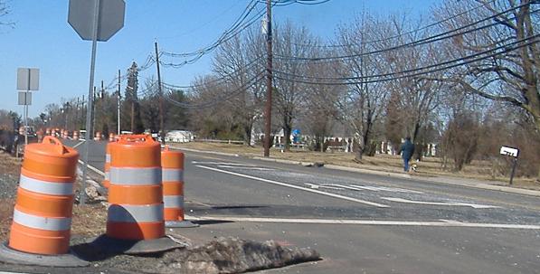 Looking west and east from Royce Brook Road at old CR 514 in Millstone, which has just been bypassed (in late 2006/early 2007) by a new railroad bridge. Coast is clear, let's go!