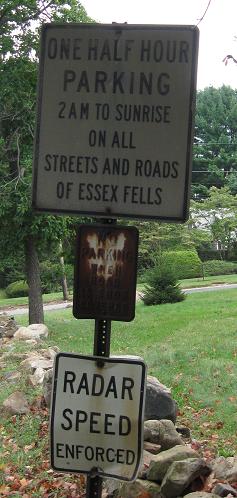 Entering Essex Fells on Roseland Ave. (CR 527, of course) NB. These three old signs that look completely mismatched actually share the same post - click on any of the photos to see the whole shebang.